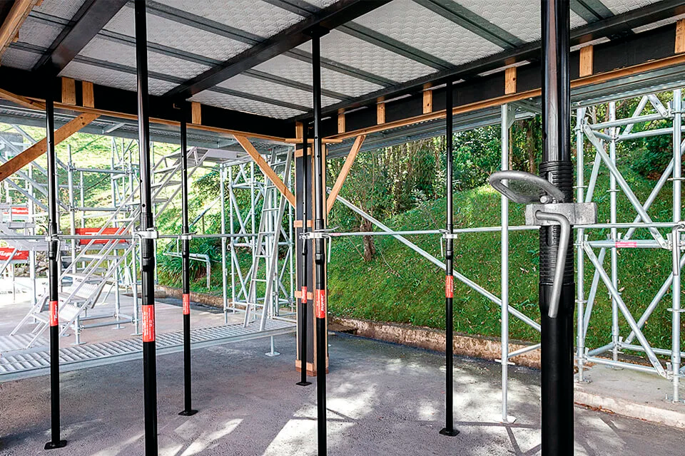 Essenciais para trabalhos em altura, andaimes e escoras metálicas proporcionam segurança e suporte estrutural confiável em projetos de construção e manutenção.